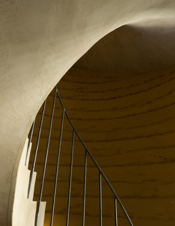 新たな墓の形式がモニュメントや機械仕掛け等人為的予定調和に頼るものが多い中、故人に対面し、偲ぶのに相応しい時間・空間は人智を超えた超越的なものでなければならないと考えている。表参道両側の樹木や足下の草花は、木漏れ日で光を、葉擦れの音で風を、異なる結実や開花時期によって季節の移り変わりを情緒豊かに伝えてくれる。トイレや水屋の表情豊かな壁面や水盤に広がる波紋はその一回性の自然現象を豊かに映し出し、自然のゆらぎを取り出すフィルターとして機能している。こうして「死」の象徴である納骨堂や墓に対して、そこにに至るまでの参道を「生」の象徴として対置させた。水盤を跨ぐように掛けられた階段は生死を分ける結界として機能する。八角形の納骨堂は宇宙のかたち=冥土そのもので、薄暗いエントランスはその輝度差ゆえ場の変換を意識させ、中心部にある版築の螺旋階段は天空のトップライトが土中を意識させつつ、回転運動の中で内省を促す。辿り着いた納骨室は光る扉が惑星のようで、竹天井隙間からの光が星のように瞬き、宇宙空間を連想させる。ここで故人と対面する。一連の建築的設えは参拝行為の時系列に沿って直接知覚に訴えるように出来ている。
